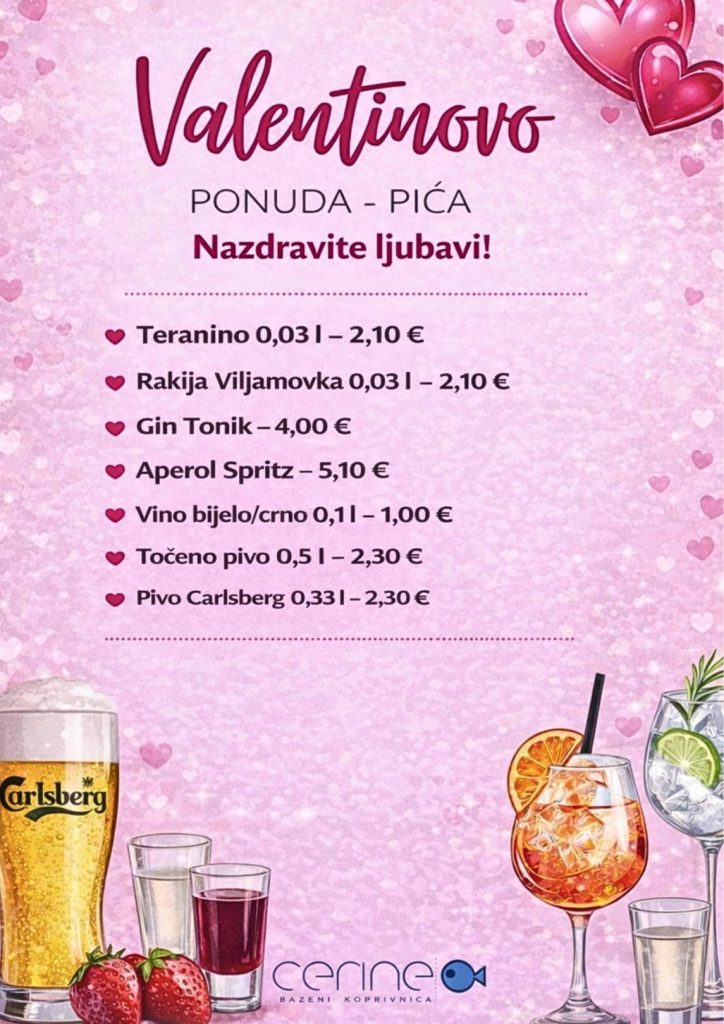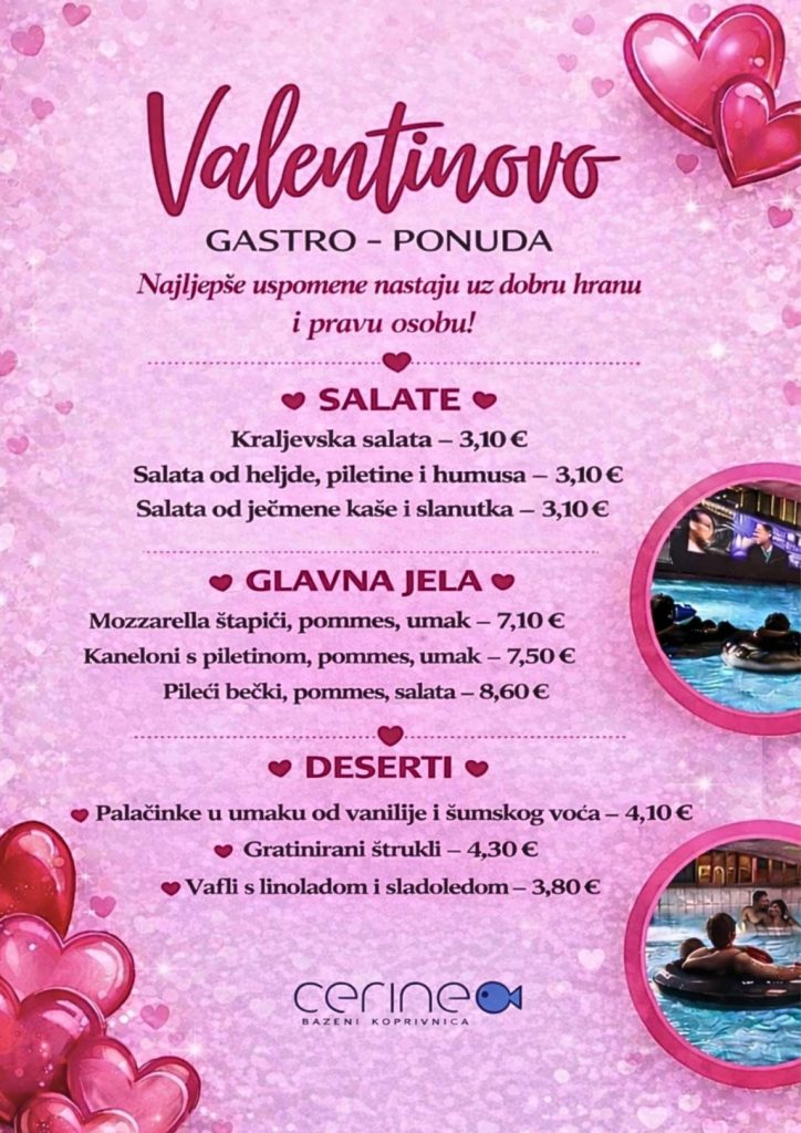 Valentinovo je savršena prilika da sebi i voljenoj osobi poklonite trenutke opuštanja, uživanja i romantike. Ove godine Bazeni Cerine pripremili su poseban program koji spaja wellness užitak i jedinstveno Kino na vodi za nezaboravnu večer ispunjenu ljubavlju.